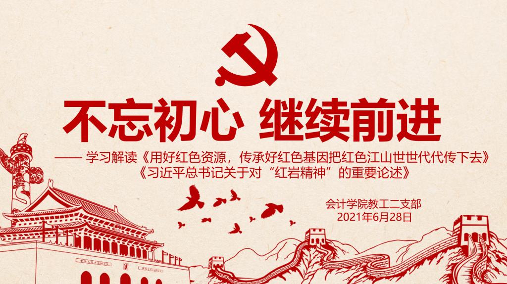 接着,9428cn太阳集团古天乐专职组织员石世明同志结合学院教师本职工作就如何“学好四史、永葆初心、永担使命”进行了详细阐述。我们要从“四史”学习教育中汲取智慧和能量,以史为鉴,不断加强工作的主动性和预见性,不断增强“四个意识”、坚定“四个自信”、做到“两个维护”,培养高素质财经人才,为全面建设社会主义现代化国家做出贡献。红岩精神是江竹筠、王朴、许晓轩、陈然等坚贞不屈、永不叛党的革命烈士对共产主义信念执着追求的高度概况,是先烈坚持真理的伟大实践,我们要把时代精神、时代需求融入红岩精神的基因和根脉中,弘扬红岩精神,践行初心与使命。