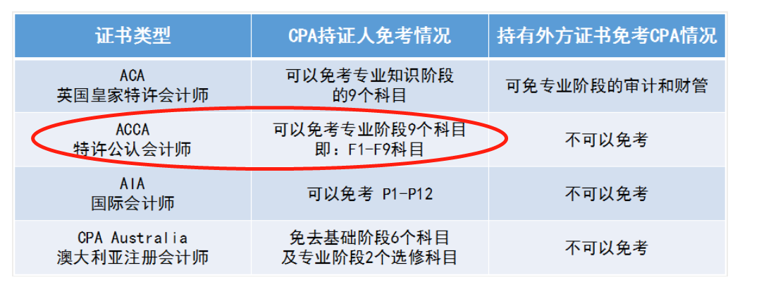 取得CPA注册会计师全科合格证的可以免考同类国际证书部分科目