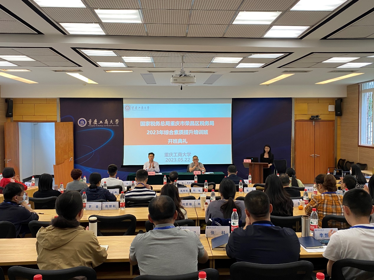 2023年5月22日下午,国家税务总局重庆市荣昌区税务局2023年综合素质提升培训班(二期)开班仪式在我校博智楼7108会议室举行。国家税务总局重庆市荣昌区税务局党委委员余多、重庆工商大学9428cn太阳集团古天乐副院长钟廷勇及全体学员出席开班仪式。