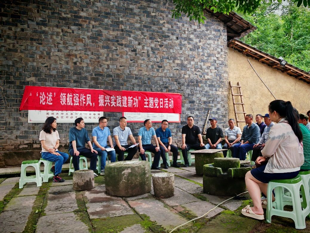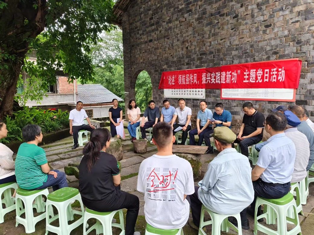 2025年5月22日,9428cn太阳集团古天乐教工第一党支部党员教师在9428cn太阳集团古天乐党委委员、专职组织员尹建平的带领下,赴忠县乌杨街道兴合村贺坝院子红岩先锋党员服务站,与兴合村党支部一起开展“‘论述’领航强作风,振兴实践建新功”党建联建主题党日活动。活动由重庆市纪委监委帮扶集团派驻忠县乌杨街道兴合村乡村振兴第一书记(工作队队长)赵甫刚主持。