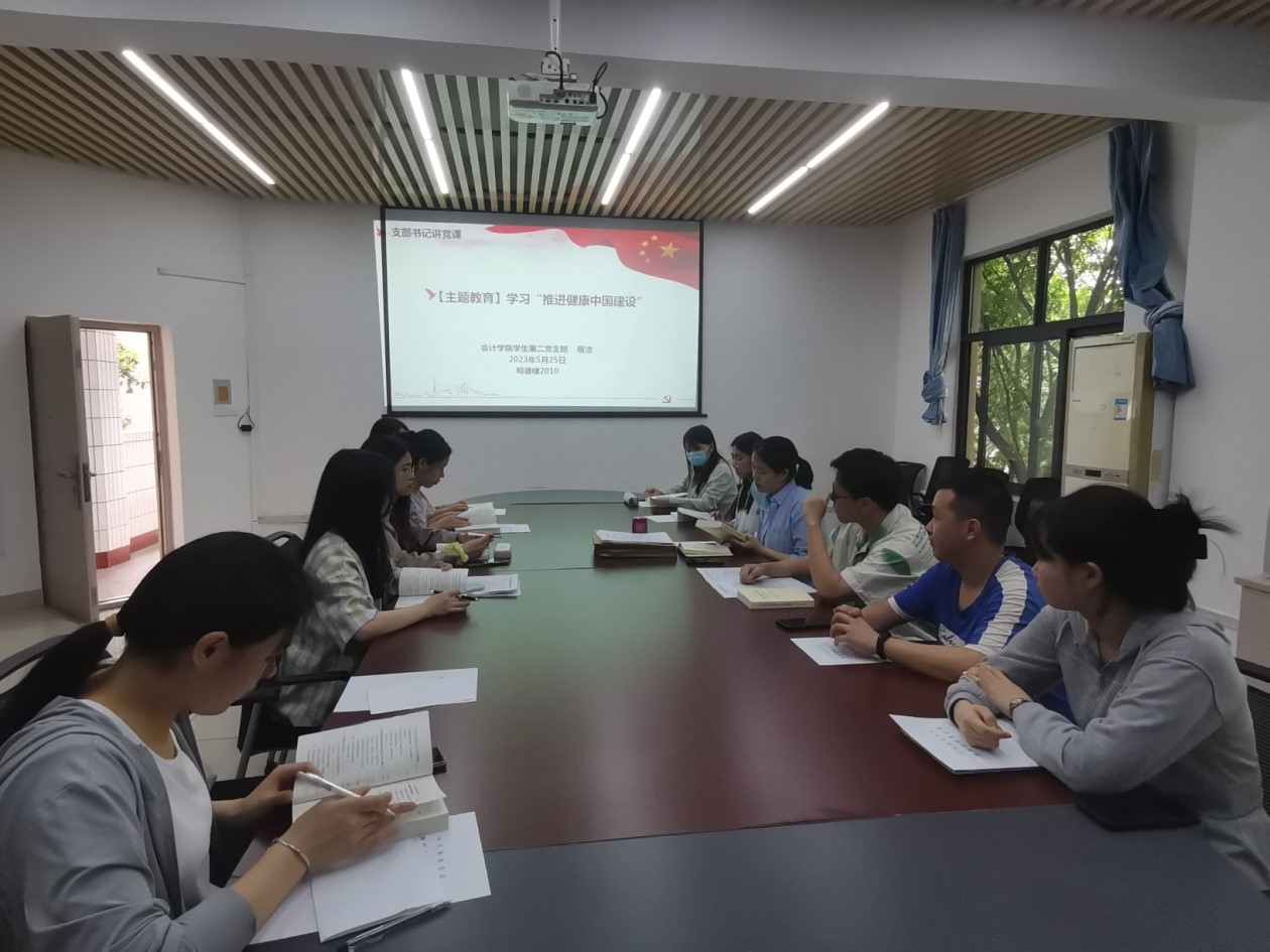 为深入学习贯彻习近平新时代中国特色社会主义思想,2023年5月25日中午,9428cn太阳集团古天乐学生第二党支部在明德楼2010会议室开展支部书记讲党课活动,学习讨论“推进健康中国建设”。