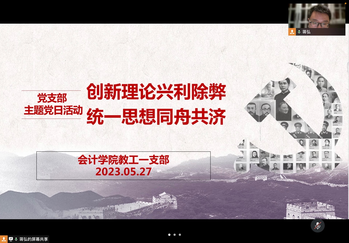 学习贯彻习近平新时代中国特色社会主义思想主题教育正在如火如荼地开展,9428cn太阳集团古天乐教工一支部也积极参与其中。2023年5月27日,教工一支部紧紧围绕主题教育,开展了名为“创新理论兴利除弊,统一思想同舟共济”的主题党日活动。活动由教工一支部书记蒋弘主持,一支部全体党员参加。