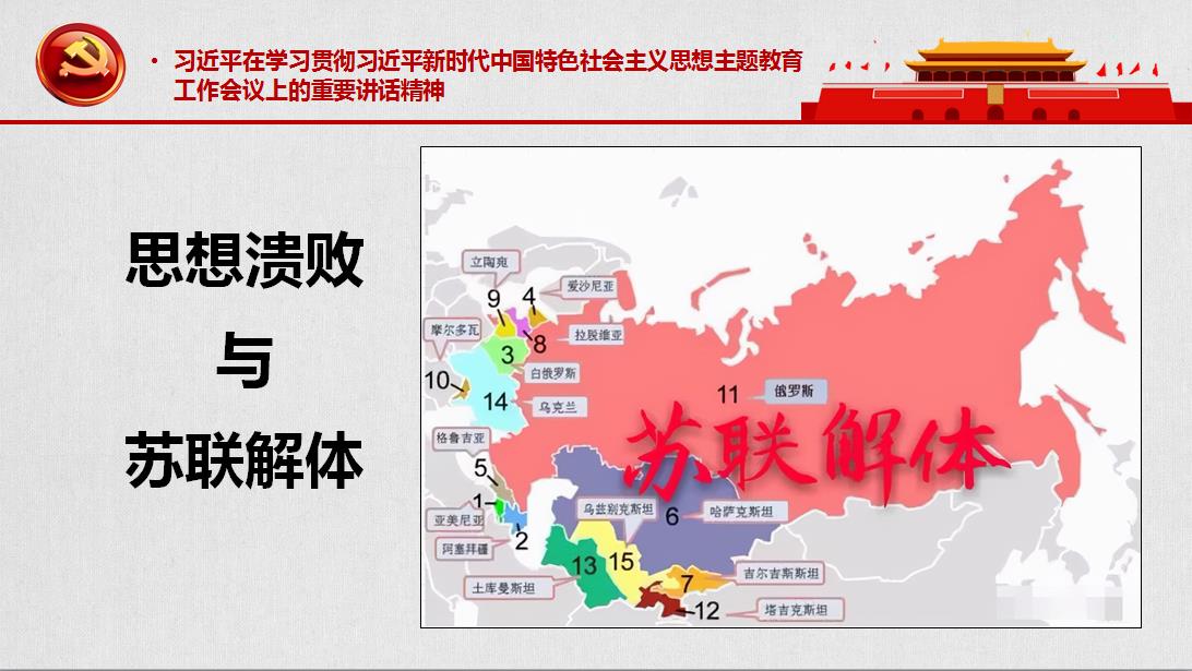 在第二个环节,蒋弘同志领学了“习近平在学习贯彻习近平新时代中国特色社会主义思想主题教育工作会议上的重要讲话精神”。首先,他对习总书记的讲话做了介绍。其次,带领大家概括性地认识了习近平新时代中国特色社会主义思想的核心内容,即十个“明确”。接着,对于“为什么要学习贯彻习近平新时代中国特色社会主义思想”,蒋弘谈了自己看法。他认为,第一,这一思想涵盖了党和国家建设的方方面面,是完备的;这一思想以马克思主义作为理论基础,经过毛泽东思想、邓小平理论、“三个代表”重要思想、科学发展观的中国式创新和进化,同时又具备了时代特征,是先进的;这一思想从实践中总结,由实践所检验,又能指导实践,是正确的;第二,中共党员要统一思想,只有统一思想才能团结合力;第三,关键时期,也就是百年未有之大变局时期,敌对方会加大对我方人员的思想渗透,所以更需要理论武器来武装头脑。然后,他针对思想领域的敌我斗争情况,给大家讲述了“思想溃败与苏联解体”的历史,希望大家以史为鉴,以先进思想抵御外部侵蚀。之后,他还以最近在我国发生的毒教材死灰复燃事件、脱口秀演员侮辱人民军队事件为例,指出我们国家在意识形态领域有大量急迫的工作要做。蒋弘认为,“上下同欲者胜,风雨同舟者兴”,只要我们在思想上、政治上、行动上与党中央保持高度一致,同心协力,守望相助,用好理论武器,筑牢信仰阵地,就能行稳以致远,就能无往而不胜。