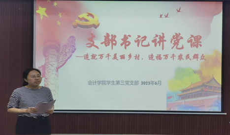 最后,支部书记陈曦同志以“造就万千美丽乡村造福万千农民群众——浙江20年持之以恒实施‘千万工程’经验案例”为主题为同学们讲了一堂生动的党课。她向党员们全面展示了“千万工程”的具体背景、历史进程、杰出成效、先进经验,她总结说,“千万工程”既是推动高质量发展的鲜活教材,也是全面推进乡村振兴的成功案例,既彰显了久久为功抓落实的力度,也传递出用心用情惠民生的温度,为中国式现代化写下生动注脚。她还以“千万工程”引导党员同学们重新审视个人的成长,她说,我们个人也可以从“千万工程”中汲取智慧和力量,在坚守中砥砺创新,为自己、为国家赢得更美好的未来。