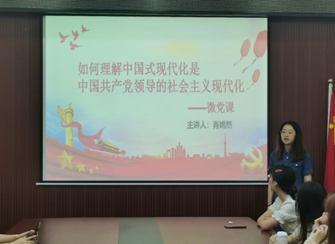 接着,肖嫣然同志就“如何理解中国式现代化是中国共产党领导的社会主义现代化”主讲了微党课。她用生动的故事、案例阐释了:党的领导决定中国式现代化的根本性质;党的领导确保中国式现代化锚定奋斗目标行稳致远;党的领导激发建设中国式现代化的强劲动力;党的领导凝聚建设中国式现代化的磅礴力量;党的领导直接关系中国式现代化的根本方向、前途命运、最终成败。