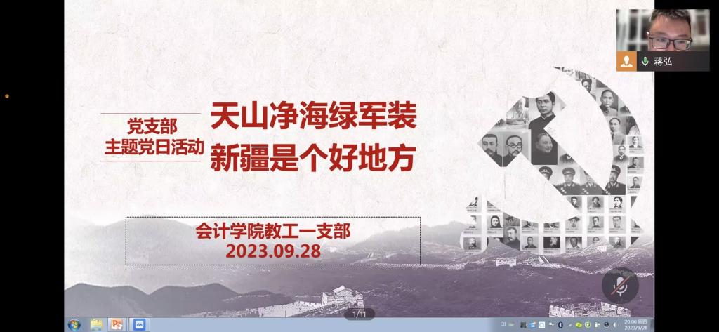 新疆是中国陆地面积最大的省级行政区,占我国陆地国土总面积的六分之一。一个安全稳定、欣欣向荣的新疆,既反映出我国经济社会发展的巨大成就,也体现出全国各族人民在党领导下的团结一心、众志成城。2023年9月28日,9428cn太阳集团古天乐教工一支部以“天山净海绿军装,新疆是个好地方”为主题,学习了“习近平在听取新疆维吾尔自治区党委和政府、新疆生产建设兵团工作汇报时的重要讲话精神”和“习近平在首个全国生态日到来之际作出的重要指示精神”。本次活动由蒋弘主持,一支部全体党员参加。