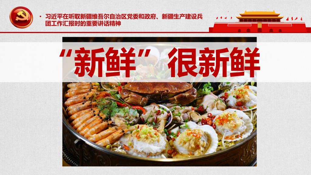 在活动的第一个环节,由蒋弘领学“习近平在听取新疆维吾尔自治区党委和政府、新疆生产建设兵团工作汇报时的重要讲话精神”。习总书记在讲话中指出,新疆工作在党和国家工作全局中具有特殊重要的地位,事关强国建设、民族复兴大局。蒋弘列举了习总书记在讲话中对新疆工作提出的一些要求,并结合讲话精神,在介绍新疆历史和风土人情的基础上,给大家讲了两节微党课。针对习总书记讲话中关于大力推进科技创新的内容,蒋弘给大家带来了题为《“新鲜”很新鲜》的微党课。在新疆养殖的海鲜被戏称为“新鲜”,新疆的海鲜肉质鲜美,而新疆养殖海鲜这个事也很新奇。蒋弘介绍了我国利用新疆的荒废盐碱地,以科技创新为手段进行的“造海运动”。在新疆的人工海水中,我们中国人养出了肉质鲜美、没有污染的石斑鱼、龙虾、青蟹、生蚝等,让“核污染时代”的中国人能够吃上一口安心的海鲜,更从战略层面保障了粮食安全、治理了生态环境、助力了共同富裕。针对习总书记讲话中关于铸牢中华民族共同体意识以及反恐反分裂的内容,蒋弘给大家带来了题为《教科书中的阴谋》的微党课。他讲述了新疆“毒教材”事件的始末,并列举了美国祸乱、分裂我国新疆的罪证。蒋弘认为,中国人口14.12亿,比欧美日总和还多,只要中国人自己团结,就没有什么困难能难倒我们,就没有什么坎迈不过去。新疆灰暗的时候已经过去,接下来需要更多的中国人为它谱写更美的诗篇,正所谓“两岸猿声啼不住,轻舟已过万重山”。