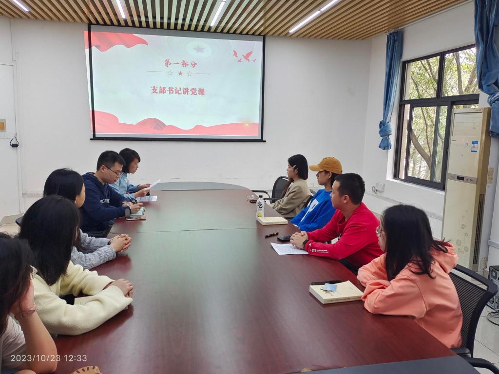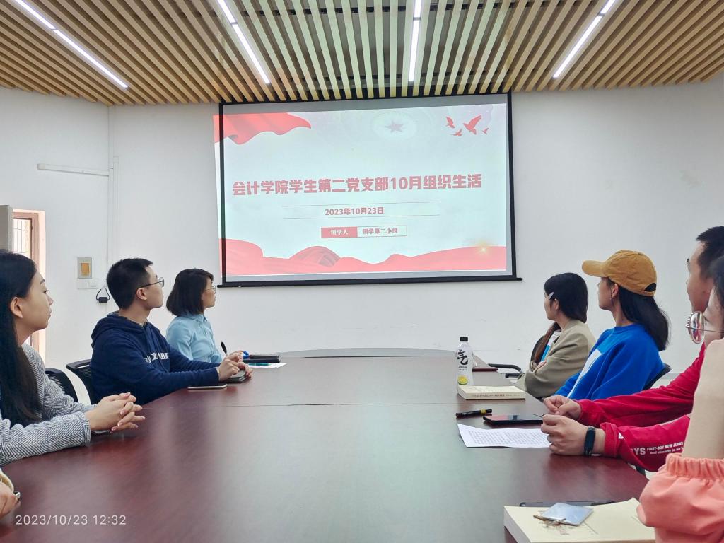 为深入学习贯彻党的二十大精神,进一步用习近平新时代中国特色社会主义思想引领青年思想、凝聚青年力量,2023年10月23日,9428cn太阳集团古天乐学生第二支部于明德楼2010举行了“强化思想淬炼,筑牢信仰之基”为主题的十月组织生活。会议由党支部书记董小婉同志主持,支部党员线上线下同步参会。