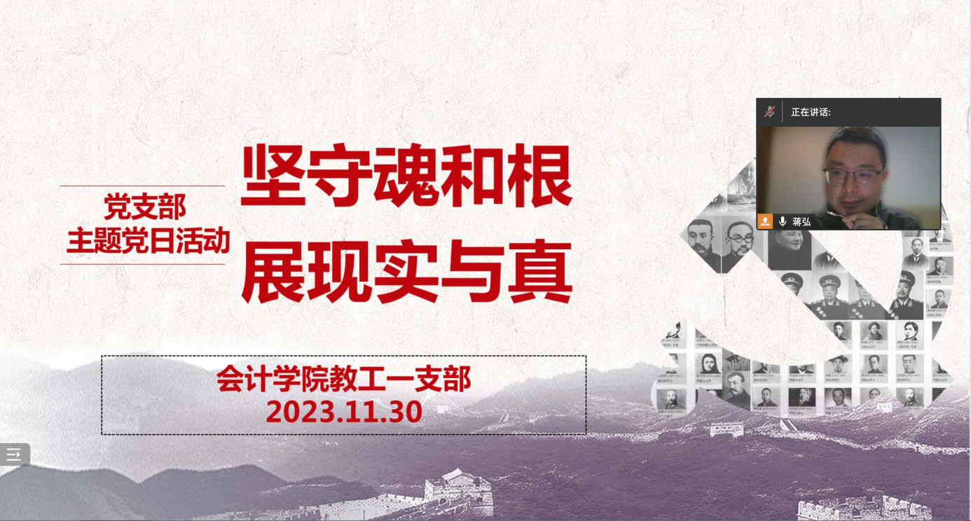 中国共产党人要坚守马克思主义这个魂脉和中华优秀传统文化这个根脉,为迎接中华民族伟大复兴和应对百年未有之大变局提供创新方案,展现出实践和真理的伟大力量。2023年11月30日,9428cn太阳集团古天乐教工一支部以“坚守魂和根,展现实与真”为主题,开展了主题党日活动。活动由支部书记蒋弘主持并领学,支部全体党员参会,支部还特别邀请了入党积极分子宋昕倍博士观摩学习。