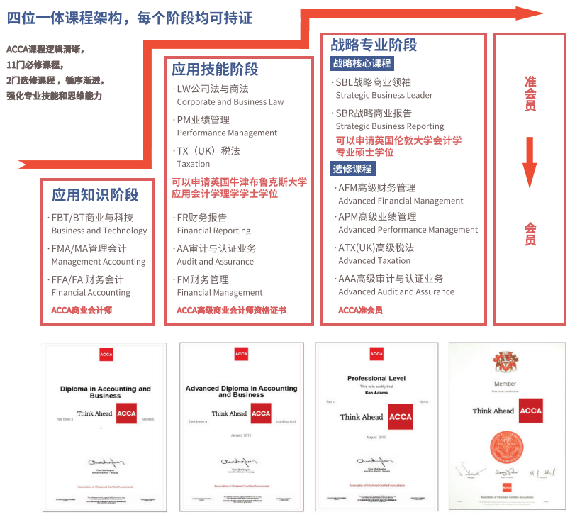 ACCA业余制班学生额外获得以下的学位申请资格以及四位一体的阶段证书激励。